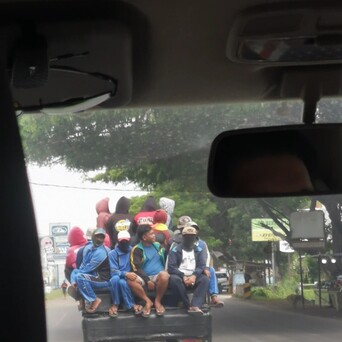 4、熟练使用转向灯,因为印尼的路几乎全是双向两车道,且有很多的山路。常能看到前车打右转灯示意对向来车(打左灯示意可以超车,这个偏少)。