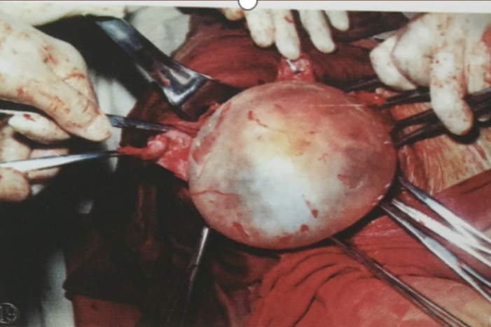 ▲手术切除的包虫病病灶